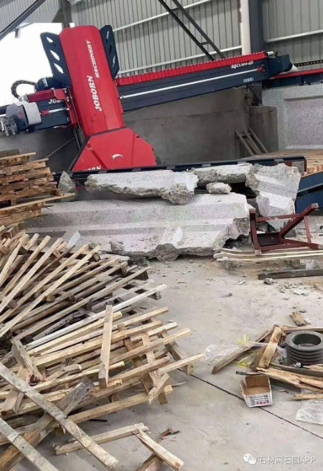 事情发生于湖北麻城一家石材厂内,知情者透露称,老板扣工人上千元,工人气不过,一气之下直接将厂内石板撞断,损坏了不少设备,端了一个厂!