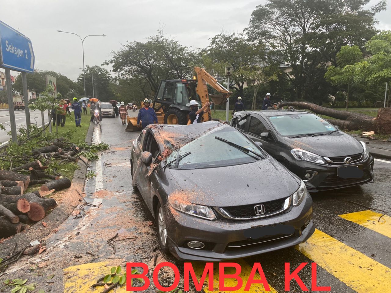 吉隆坡消拯局发言人指出,当局接获投报后,调派8名人手到场, 利用电锯锯断倒树,移走大树。