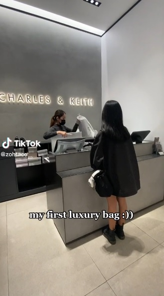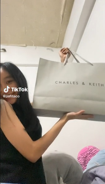 TikTok用户“zohtaco”是在星期六(7日)通过视频,分享自己喜获新包包的喜悦,说父亲给她买了一个本地牌子Charles & Keith的包包,是她人生中第一个名牌包。