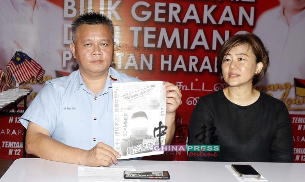 来自芙蓉的罗慧玲(51岁,保险从业员)今日通过候任沉香区州议员吴金财召开记者会,陈述受到大耳窿干扰遭遇时指,除了她,儿子及母亲都接到大耳窿的骚扰电话。