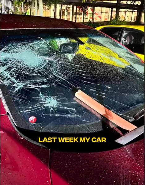 旺沙玛朱警区主任阿斯哈里警监今晚发文告指出,指事主将车泊在上述地点,并在确认车门锁好后离开现场,待他返回时却发现挡风玻璃、车的左右侧都被砸凹和刮损、侧镜也被砸坏。