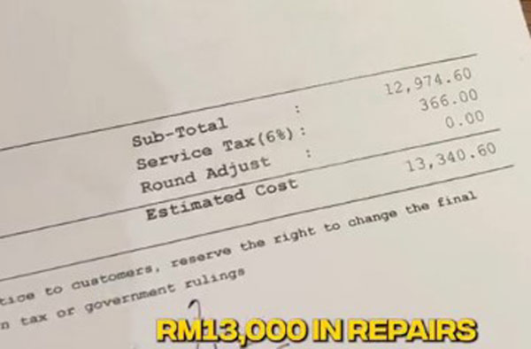 事主说,他前往附近的警局报案后,便立即将车送修,最终耗费1万3460令吉才将车修好,惟他也感叹没有伤及车的内部以及性能。