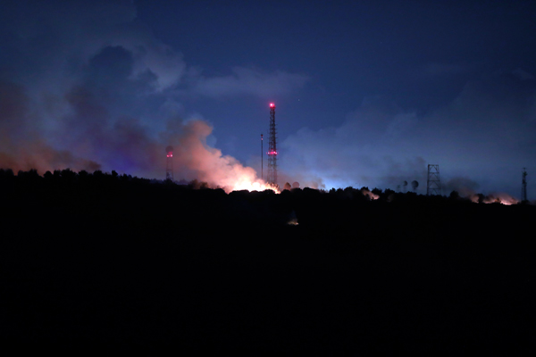 以军周二炮击黎巴嫩南部贾尔阿拉姆,火光照亮夜空,浓烟升起。(美联社)