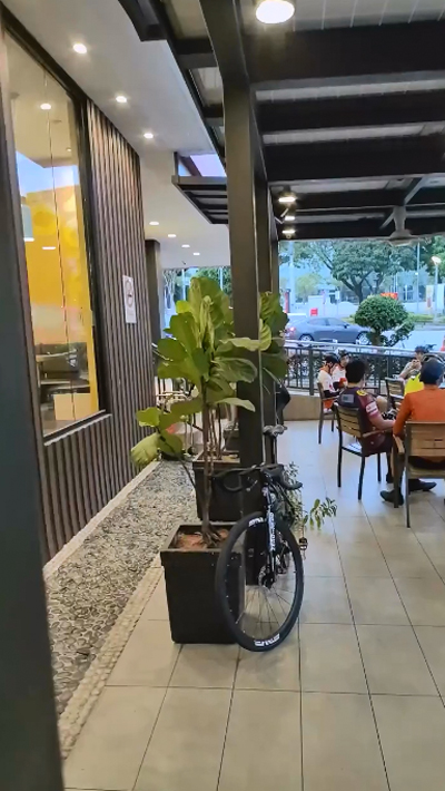 (吉隆坡4日讯)一名网友在布城一带光顾当地麦当劳期间,当地正下着雨,结果网友发现人把脚车带入当地麦当劳快餐店外避雨后遭职员责骂,禁止他和其他人在快餐店这么做。
