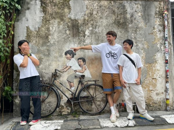 (槟城19日讯)“姐弟共骑”及“追风少年”壁画主角,3人齐齐现身,并与12年前的“自己”合影,形成有趣的画面,更是时光的见证。