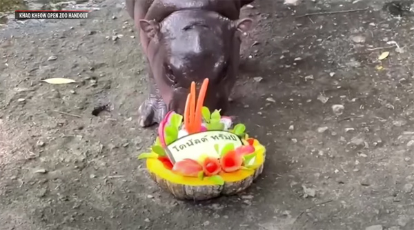 超萌侏儒河马“弹跳猪”今年7月出生后,就因为可爱模样在网路上爆红。4日,园方特别准备了两颗西瓜,分别雕刻上共和党候选人特朗普及民主党候选人贺锦丽的名字,让它“预测”美国总统大选结果。