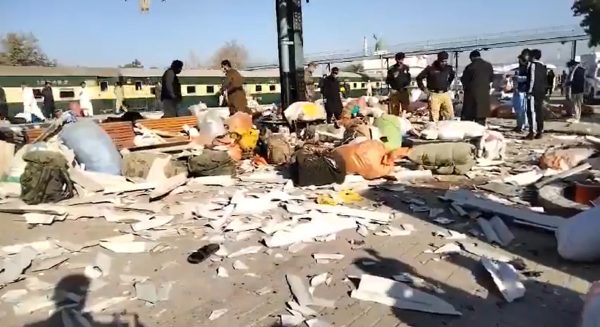 爆炸发生时,一列火车正准备从站台出发前往白沙瓦,约有100人正在月台。目前警方与消防人员赶抵现场救灾。