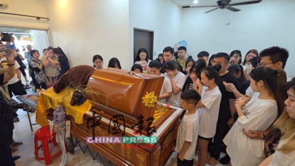 (大山脚17日讯)“集装箱转弯滑落酿一死一伤案”,被压死的21岁死者李紫柔,在位于阿儿玛花园的住家设灵5天后,今日举殡,许多亲友纷纷到来送她人生最后一程,场面哀伤。