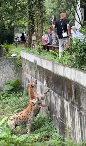 一名网民在Threads分享,木栅动物园周六日下午一名文身男直接翻过围栏,闯入斑点鬣狗区,还不断伸手挑衅,想靠近斑点鬣狗逗弄,同行女子也紧跟在后,所幸最终无人伤亡,全过程被民众目击录下,影片立刻引发网民挞伐,纷纷留言怒骂,“到底要干嘛,这些猴儿”、“89全都是社会底层,没有例外”、“建议园方开放检举,让这位永远不能入园 ”。