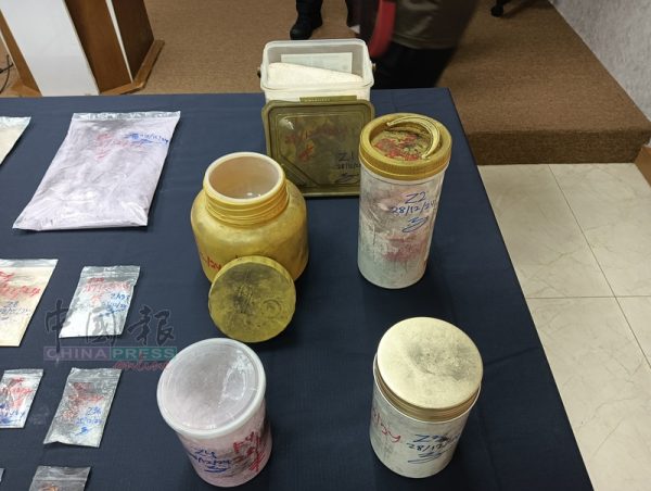 他提及,警方也查获总值为241万2870令吉的毒品,包括约14公斤“爱他死”粉末(240万5102令吉)、约24克克他命(4916令吉)、约2克冰毒(302令吉),及约19克“爱他死”药丸(2550令吉);所有毒品能供7万2195人使用。