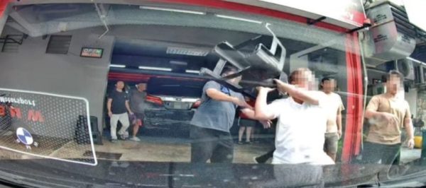 华裔男子期间拿起椅子高举叫嚣,怒指洗车员“态度骄傲”。(照片取自网络)