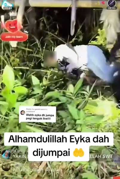 《大都会日报》报导,艾卡是于今晚约10时,在案发的印尼万隆森林被寻获,惟艾卡当时身体非常虚弱。