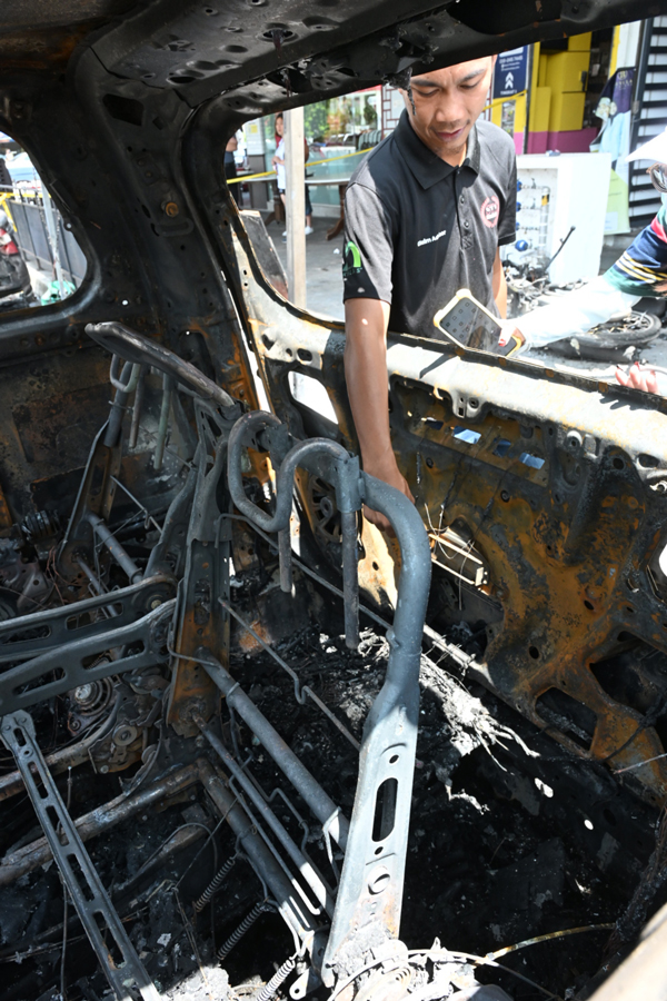 (加影12日讯/独家)“C180商业区的烟花摊位发生爆炸”事故,其中一辆被炸得近乎报废的丰田Vellfire休旅车,被指是属于涉事烟花摊位的摊主,后车厢有大量烟花爆竹残留物,不排除是摊主用来载货的车!