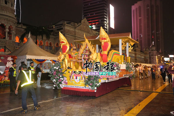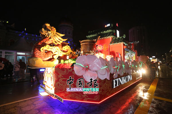 10辆展现我国各民族特色的花车游行,主持人为其逐一介绍,除了华、巫、印三大种族外,也包括爪哇、原住民、仄迪族等少数民族的花车,推广种族和谐。