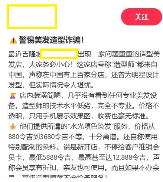 相关新闻>>美发业黑店 施展迷魂术 顾客被逼支付逾千 方脱身
