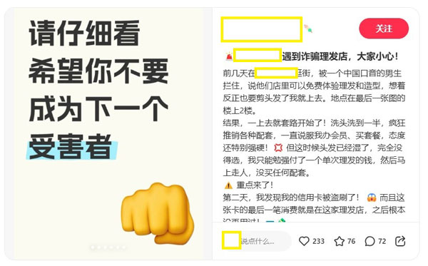 不仅如此,在小红书上搜索该理发店时,竟发现从去年开始,便有多位女网民发帖控诉类似遭遇。