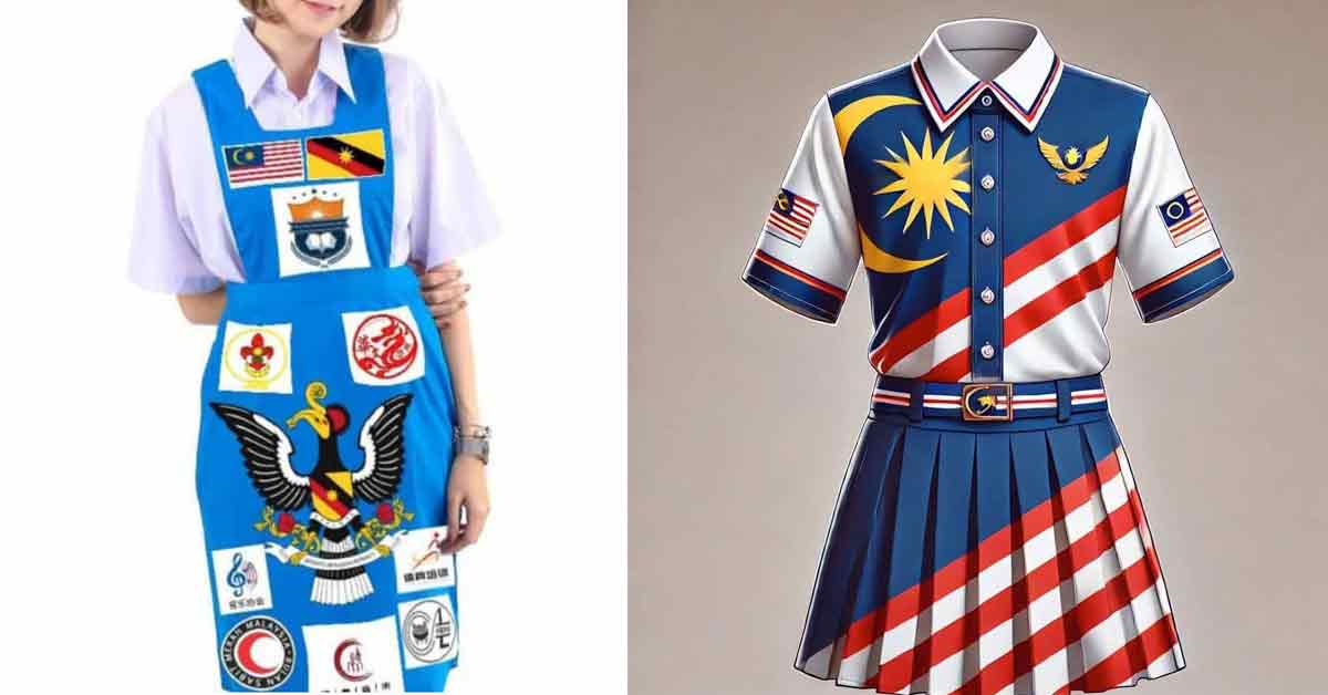 (吉隆坡27日讯)隶属于教育部的学校及教育机构将从4月21日起,必须在校服上佩戴“辉煌条纹”(国旗)徽章,此措施还未开跑,一些网民已发挥创意,将校服融入国旗和州徽元素。