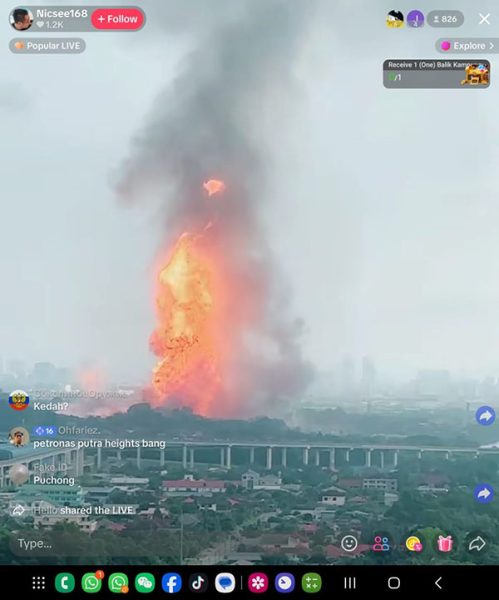 一间油站今晨8时起火,火势凶猛,火焰更是高涨至数公里外可见。