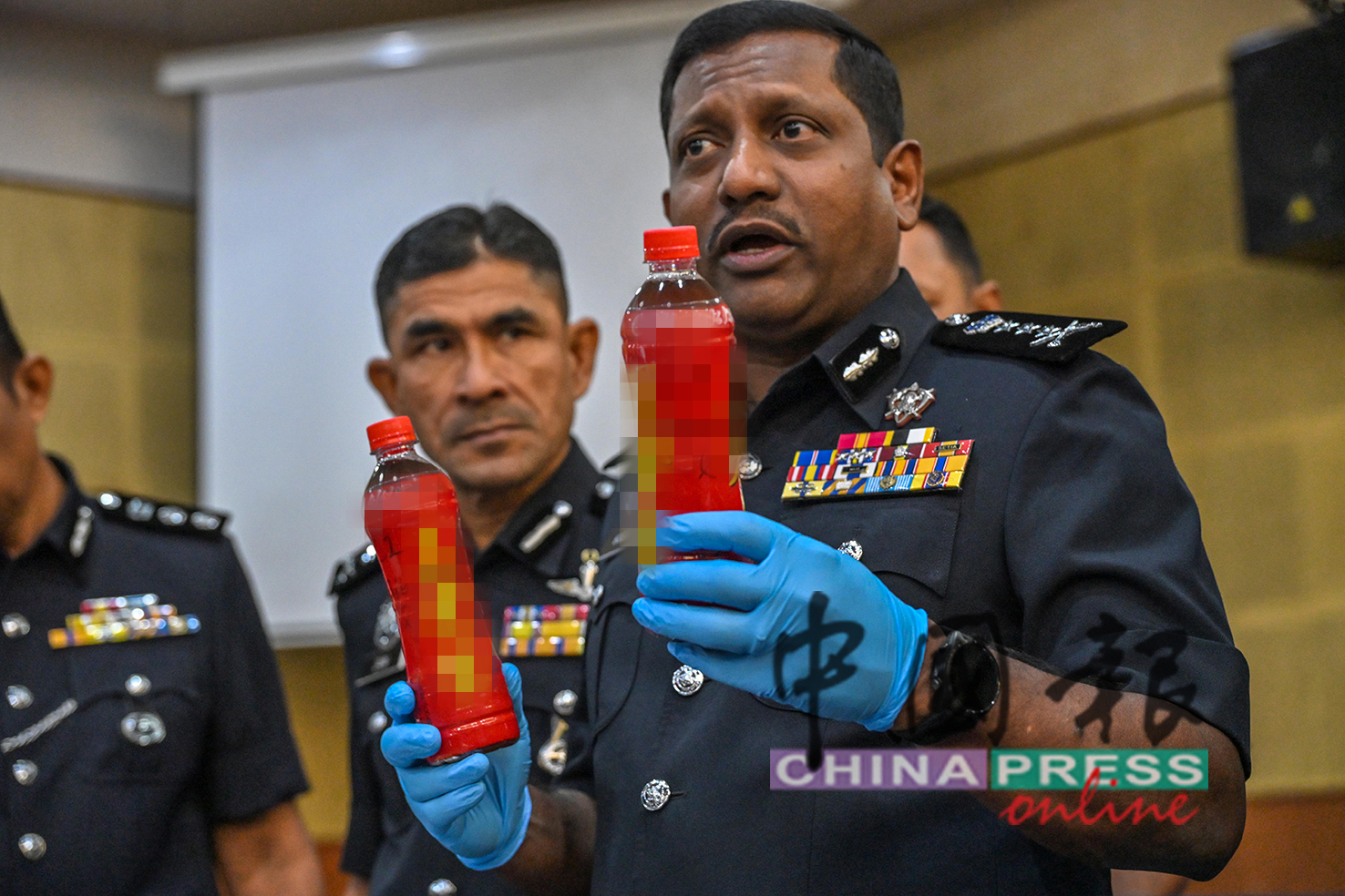 他说,嫌犯购买市面上常见且受欢迎的王老吉瓶装凉茶,之后自行掺入毒品,再以每瓶高达300令吉的价格卖入娱乐场所牟利。