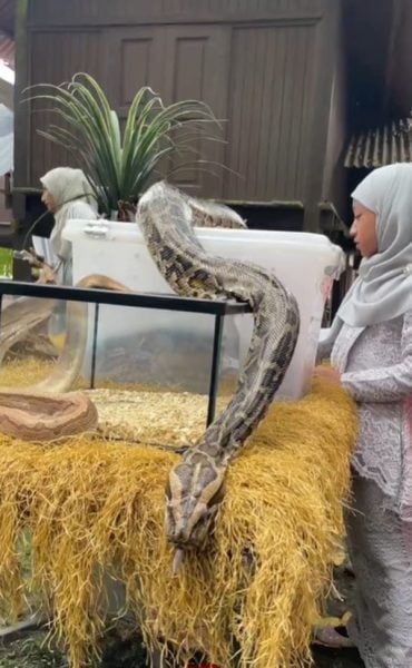 根据视频,有人还把蛇放在宾客的脖子上,让他们拍照留念。