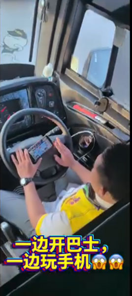 (吉隆坡1日讯)一名长途巴士司机在行驶途中竟沉迷玩手机游戏,危险行径被乘客拍下上传社交媒体,引发公愤!
