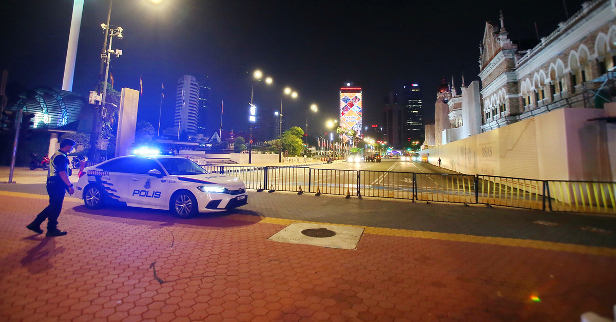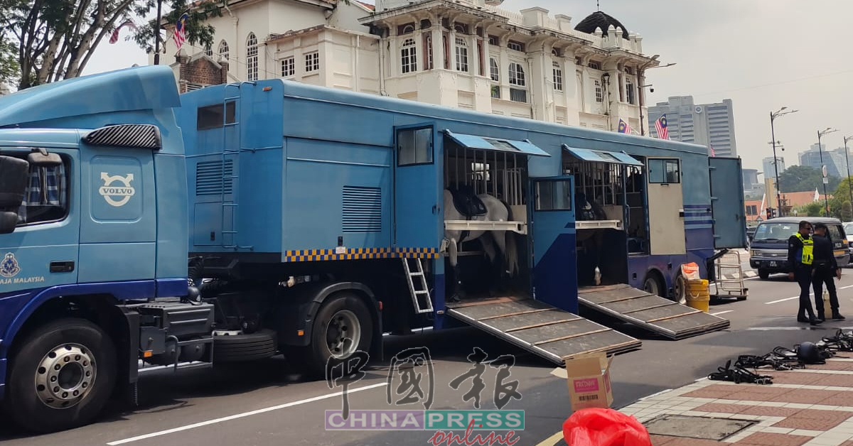 12.00AM 警方深夜仍为集会做最后准备。独立广场、孟沙轻快铁站一带,深夜都见到警方设置路障、障碍物。(https://www.chinapress.com.my?p=4515043)