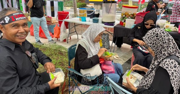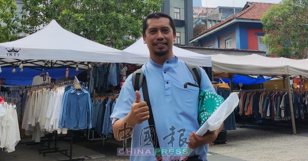10.25AM 集会带来商机!占美清真寺一带开始有参与者出现,现场也有商贩摆摊。