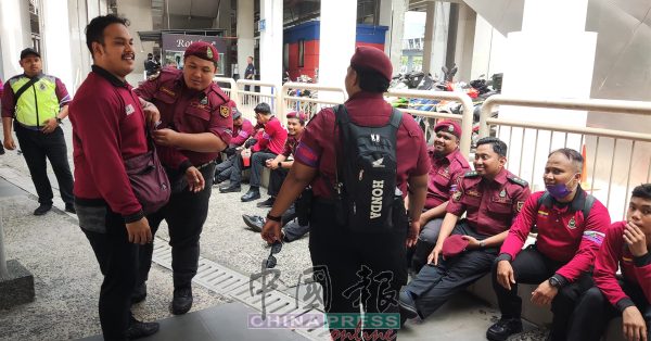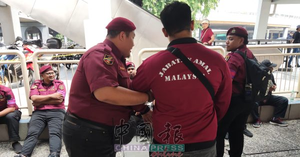 11:47AM 大马慈善福利局(Jabatan Amal Malaysia)在中央艺术坊派员45人维持现场安保。负责人员皆有佩戴“倒安华”集会臂章以示身分。