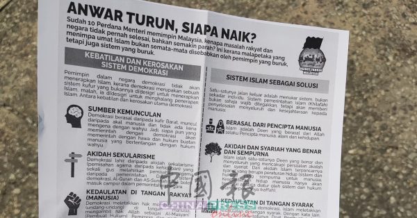 11:57AM 伊斯兰解放党组织(Hizbut Tahrir Malaysia)影印5000份传单,并于各个集会地点派发。传单内容提出以伊斯兰系统治国,作为解决国家腐败的方案。
