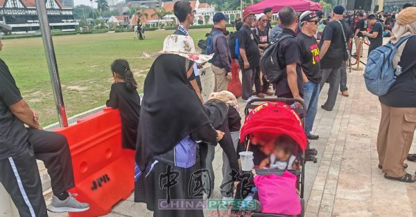 12:19PM 为表达对首相拿督斯里安华的不满,妇女与丈夫携3名年龄介于1岁至8岁的孩子,一家六口从登嘉楼来到吉隆坡参与集会。