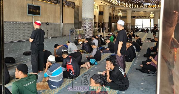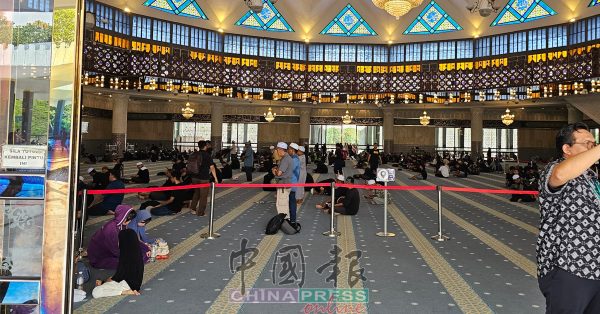 12:25PM 参与集会也不忘履行宗教义务,与会民众进入国家清真寺进行祈祷。