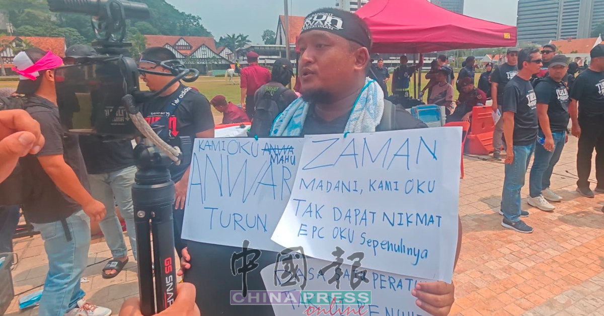 12:37PM 来自霹雳患有自闭与注意力不足过动(ADHD)的30岁男子参与集会,控诉安华忽视残疾人士的权益 。