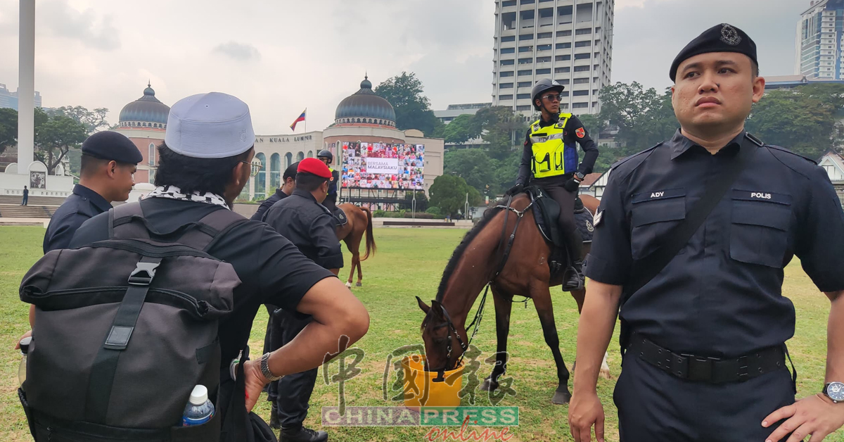 警方一早抵达包括占美清真寺在内的各个地点,为“倒安华”集会作准备,防止发生不愉快事件。