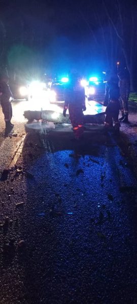 断树枝躺路中 2摩哆撞上 兄死弟伤