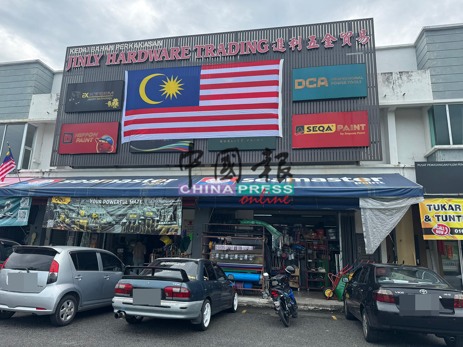(北海15日讯)经历倒挂国旗风波的甲抛峇底五金店,今早8时30分恢复营业。不过,东主冯进镇(59岁)及涉事的一名员工,因需处理重要事务,今日并未回店。