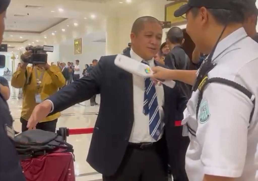 扎拉家属代表律师哈密依斯迈进入法庭前接受安保检查。