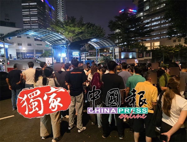 (吉隆坡27日讯/独家报导)警方昨天大突击孟沙南城(Bangsar South)某商业大楼时,原来扣查了超过400名男女,他们全被押返十五碑警区总部助查超过24小时,逾百名家属闻讯后赶往现场守候!