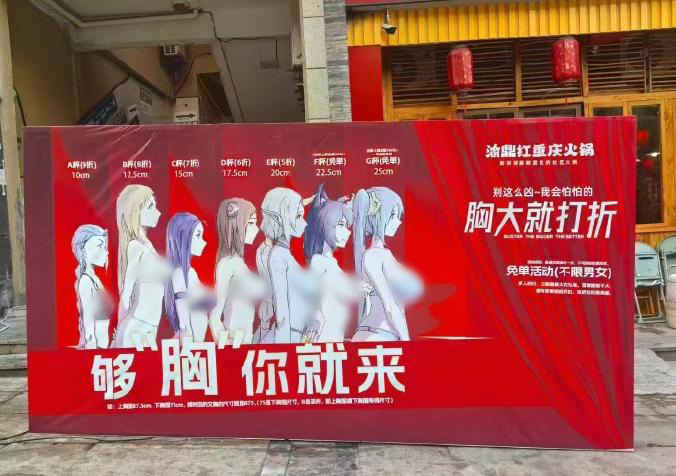 重庆有火锅店推“胸大就打折”活动,惹来恶抨。