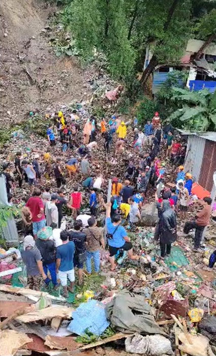 搜救人员较后在坍塌的屋子下,寻获2名受困者的身影,惟他们已无气息,当局正在搜寻剩余一名受困者的下落。