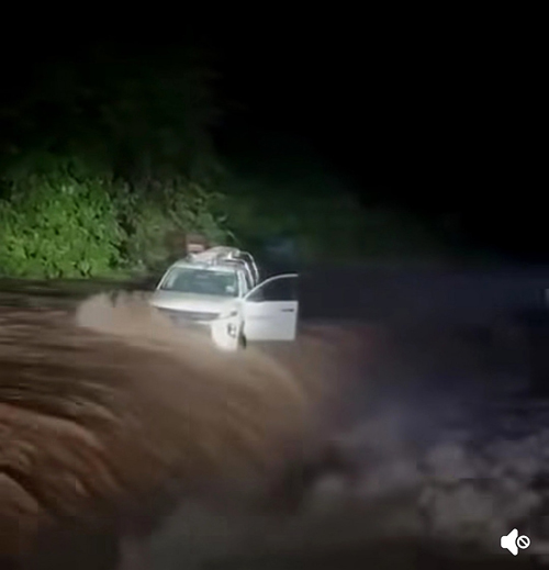 社交媒体早前流传一段视频,显示一辆货卡被水灾困住,相信有关人员是在该甘榜断电后正进行抢修工作。