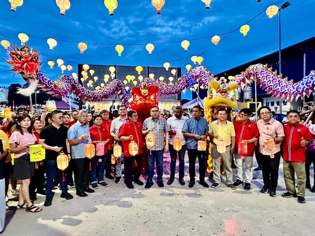真纳州选区举办中秋晚会,陆兆福(右7)协同多名州议员,县议员以及村委们一起进行提灯笼游行