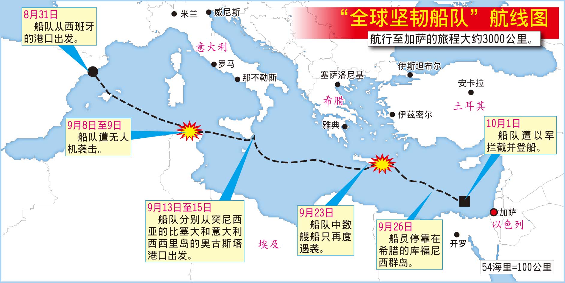 GSF是迄今为止前往加萨规模最大的海上任务,船队汇聚了来自至少44个国家的50多艘民船和逾500名志愿者,试图突破以色列海上封锁,将救援物资运送至加萨。