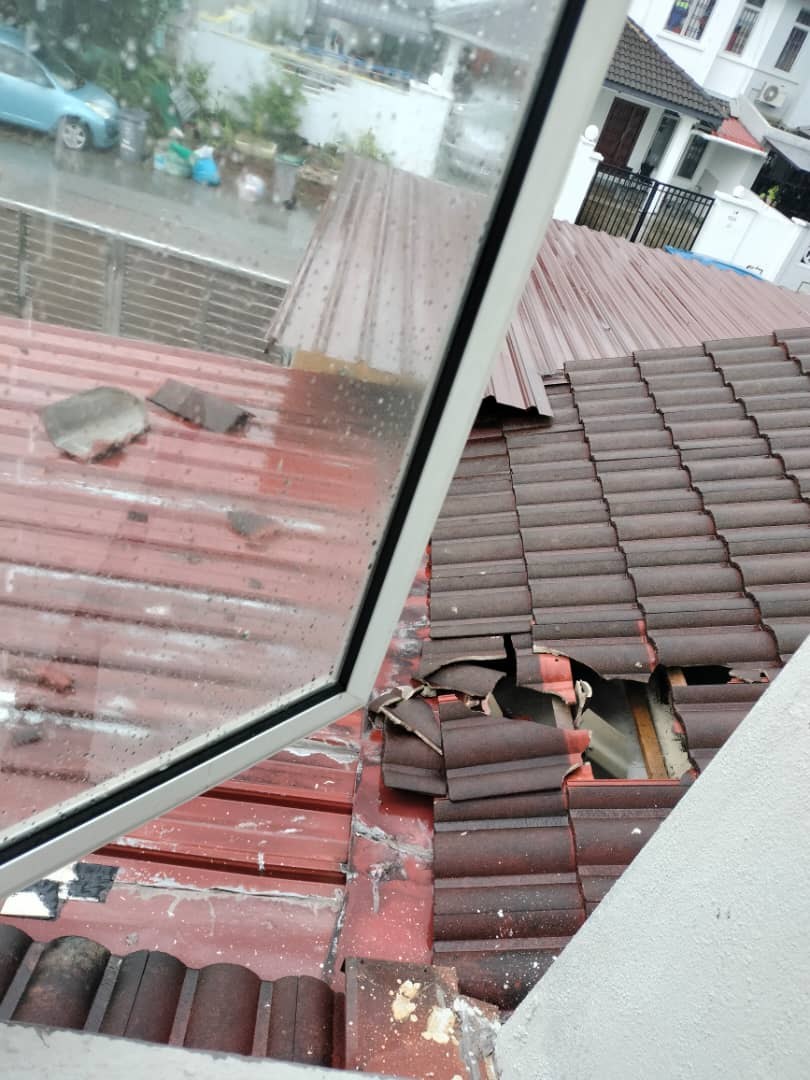 社交媒体流传多个强风暴雨侵袭武吉英达花园一带的视频,有民众投诉强风暴雨造成家中屋瓦破碎漏水,也有民众称刚安装的铁架,遭强风刮弯。
