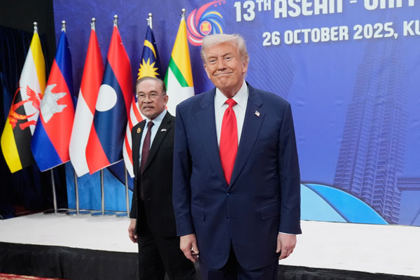 安华今日与特朗普,见证泰国首相阿努廷与柬埔寨首相洪马内签署“吉隆坡和平协议”上,这么说。