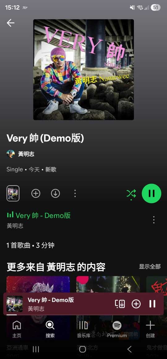 根据《中国报》记者观察,Spotify上的《Very帅-Demo版》歌曲,显示于今日新发布,歌曲时长3分钟46秒。