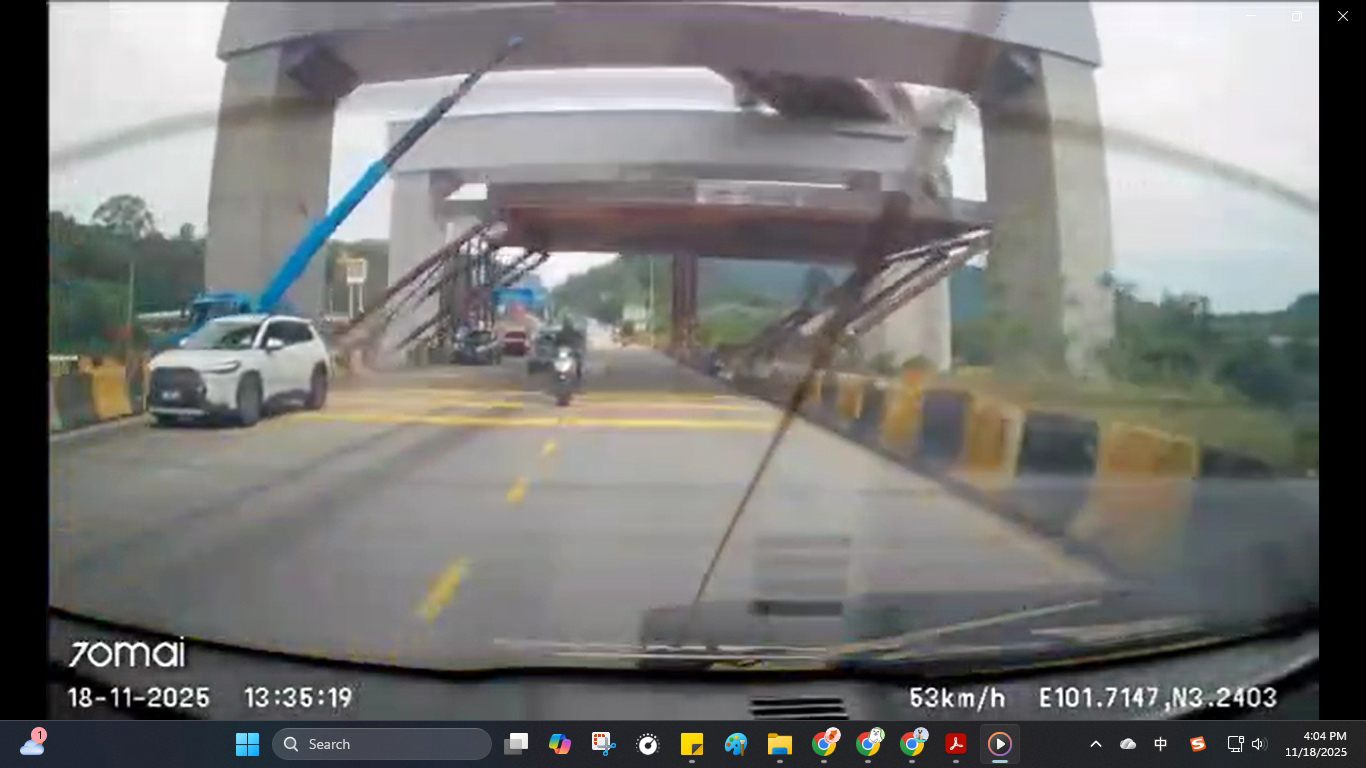 根据社交媒体流传的行车记录仪视频显示,事发路段的车流量不多,期间钢架突然倒塌,砸中途经现场的一辆铃木轿车。