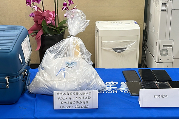 进一步查验后,发现行李箱暗藏4.3公斤的第一级毒品海洛因,市值超过新台币2000万元(约266万808令吉),当场逮捕携带行李的马来西亚籍S男。