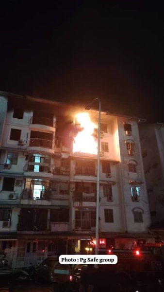 (槟城6日讯)公寓单位失火,怀孕3个月孕妇,及时逃出火海保命!