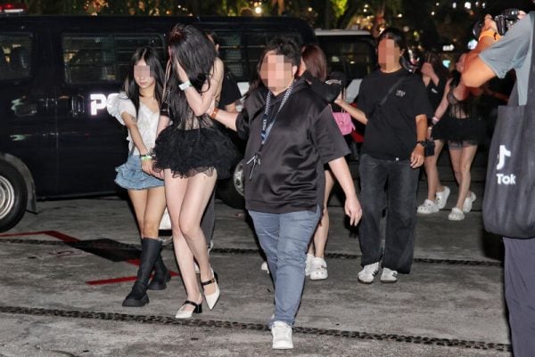 记者上周三(3日)跟随警方突击两个夜间场所,其中一个是在乌节路远东购物中心的一间KTV。据了解,现场22名陪酒女疑因无有效准证工作和涉及卖淫相关活动被逮捕,她们的年龄介于20至36岁。