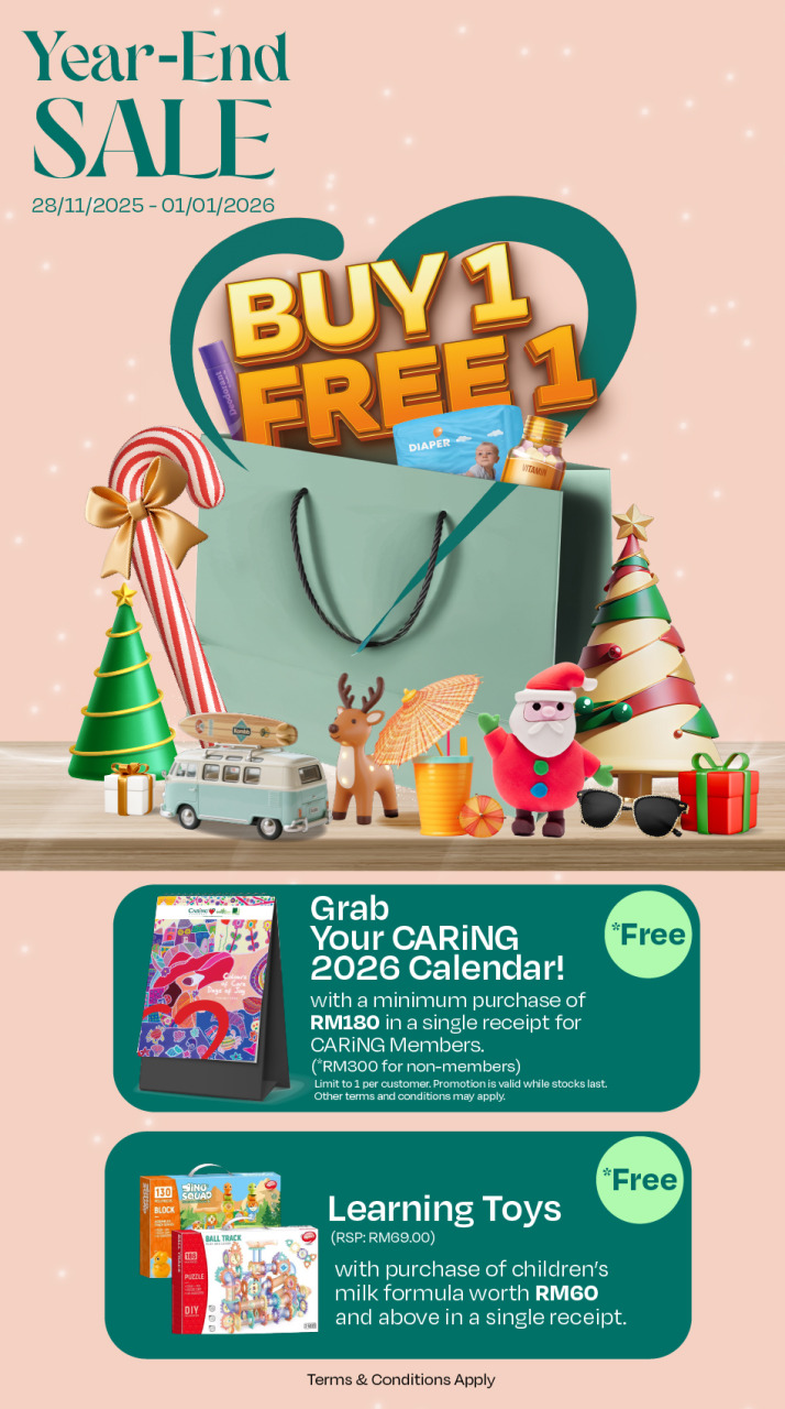 2026年《Colours of Care, Days of Joy》日历现已于全国CARiNG药剂行、Georgetown西药房和Wellings西药房开放领取,领取条件为:CARiNG会员单笔消费满180令吉,非会员单笔消费满300令吉。数量有限,送完即止。